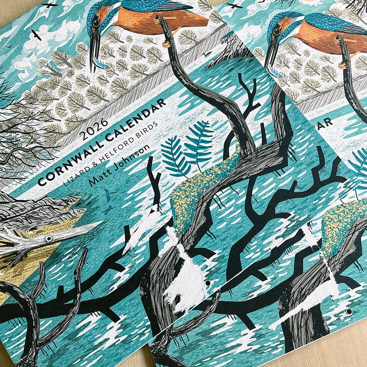 Wall calendar with views of Cornwall. Each month has a brand new illustration of birds I've spotted on the Lizard Peninsula and Helford River.
