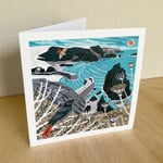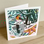 Pack of five different assorted Christmas cards of Cornwall birds: Mullion Cove Black Redstarts, Robin & Snowdrops, Mousehole Turnstones, Roseland Redwings, Falmouth Bullfinches.